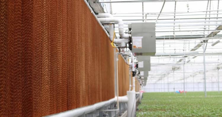 سیستم سرمایش تبخیری یکی از بهترین روشها برای خنک کردن گلخانه ها به شمار میرود. در بسیاری از مناطق، این نوع سرمایش میتواند دما را در طول روز زیر 80°F (26.6°C) نگه دارد. همچنین، پدهای سلولزی به خوبی گرد و غبار، حشرات و ذرات معلق در هوا را تصفیه میکنند.